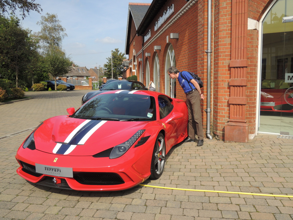 In Lyndhurst, of all places, a garage showed several Ferraris, Aston Martins and Maseratis. You see here someone thinking: "only eight!". (I don't know Ferraris but I guess it had only eight cylinders I could have seen it through the engine window but cannot remember, these cars don't interest me).